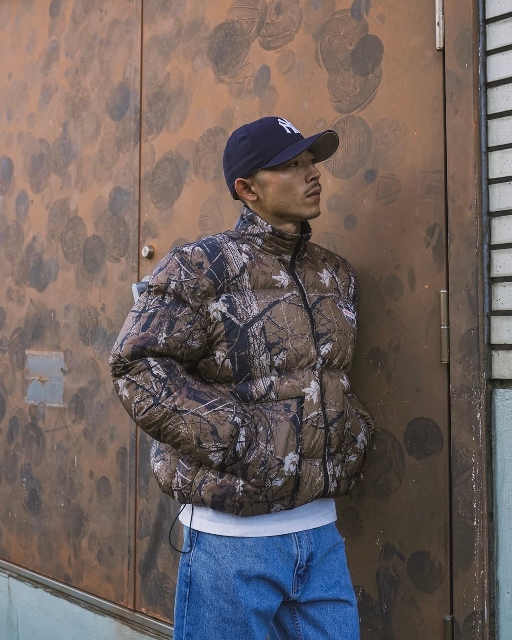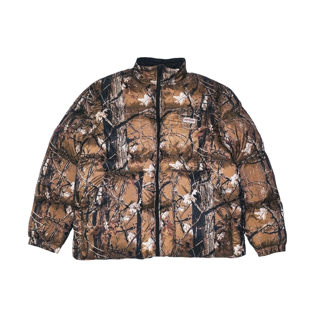 秋の森林デザインを総柄で落とし込み、色使いもGOODなダウンジャケット。