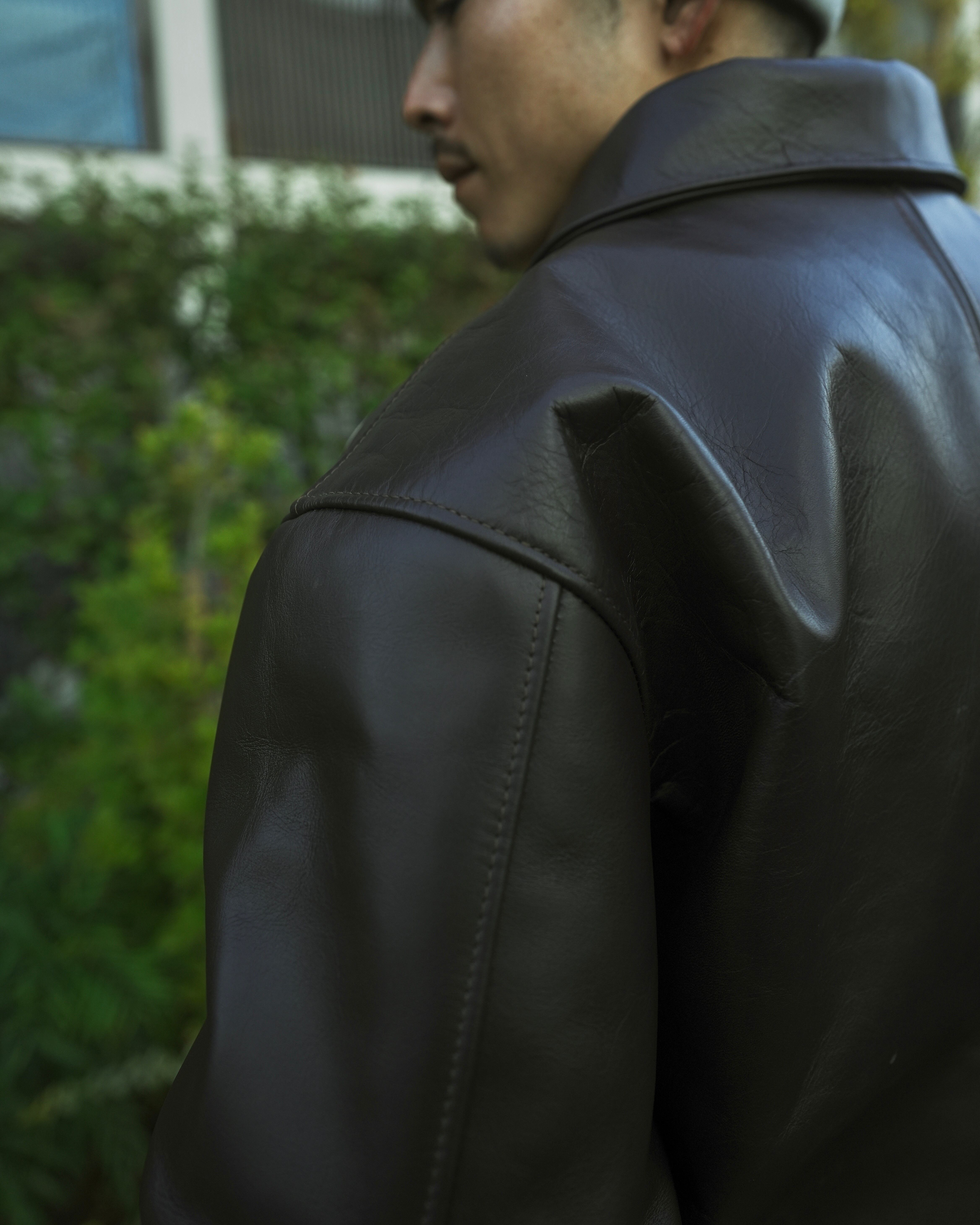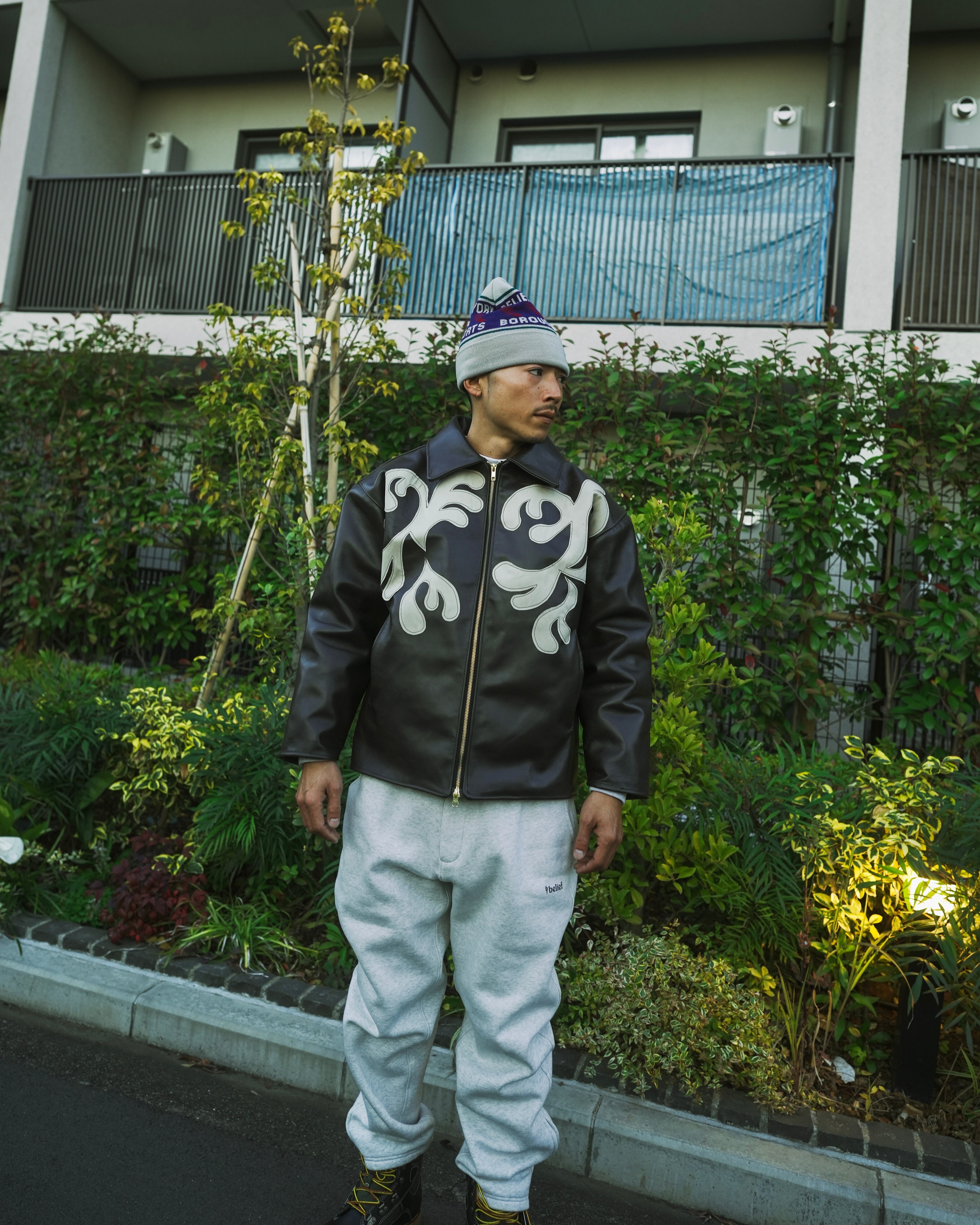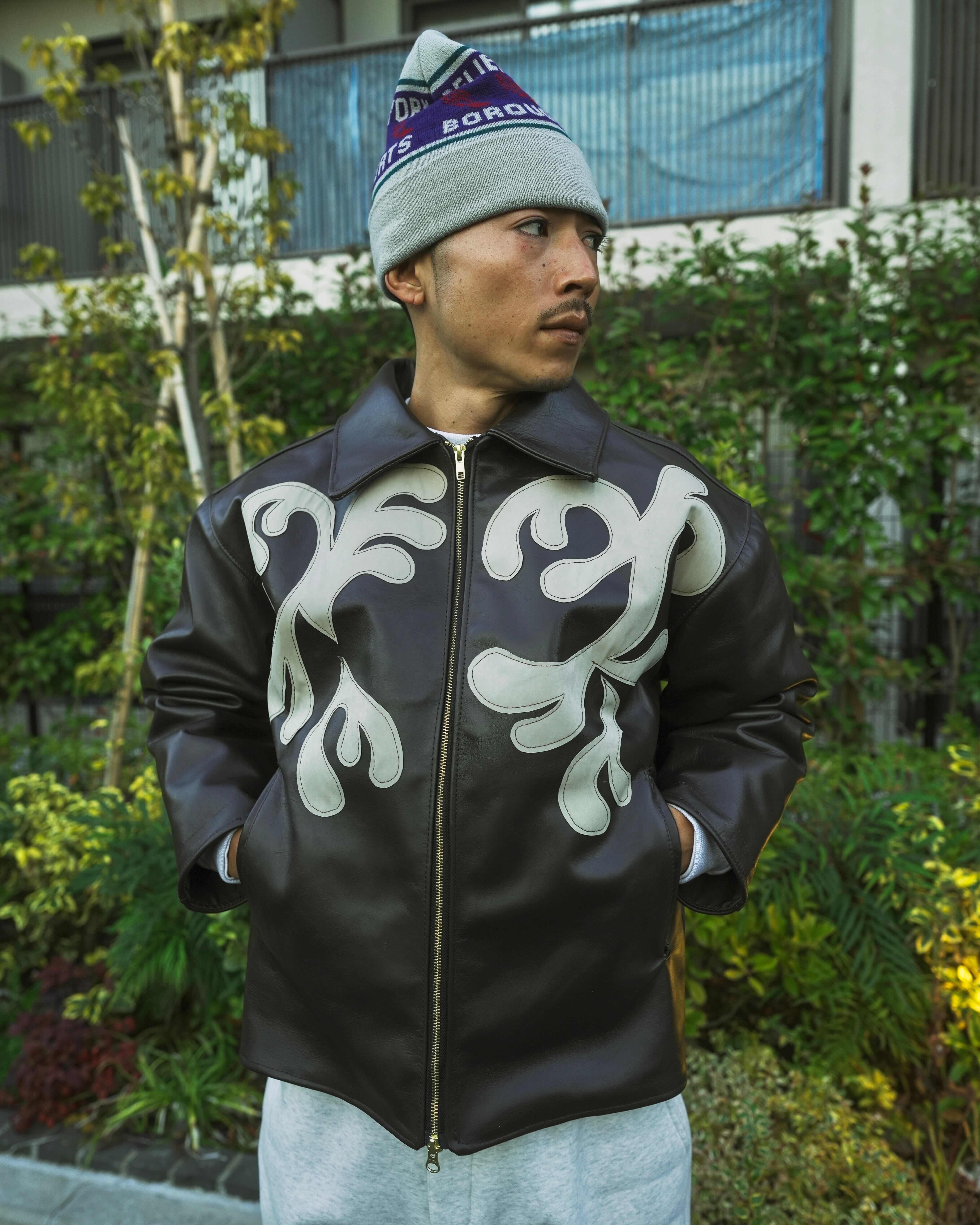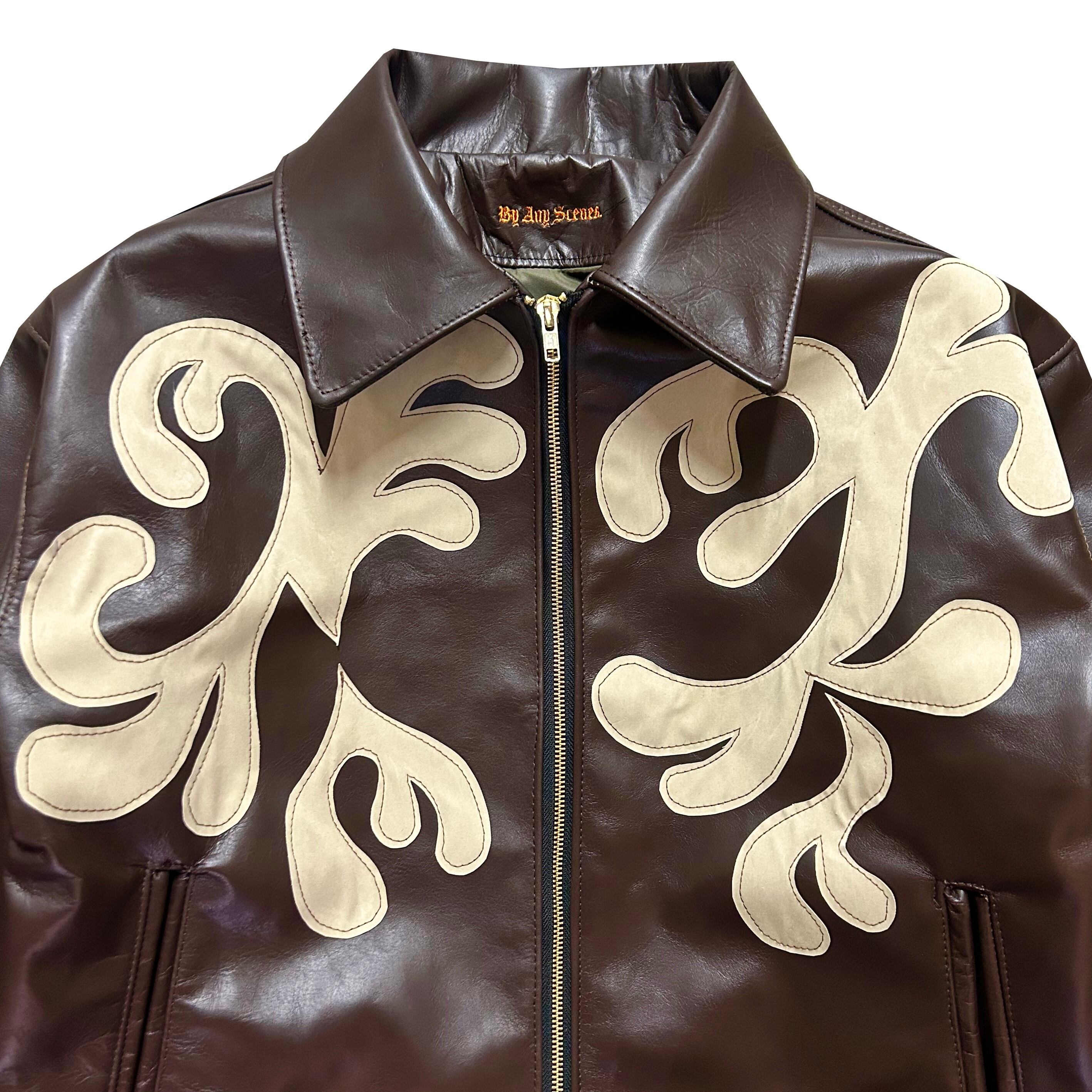 By Any Scenes / NY Pattern Patch Leather Jacket (MOCHA)