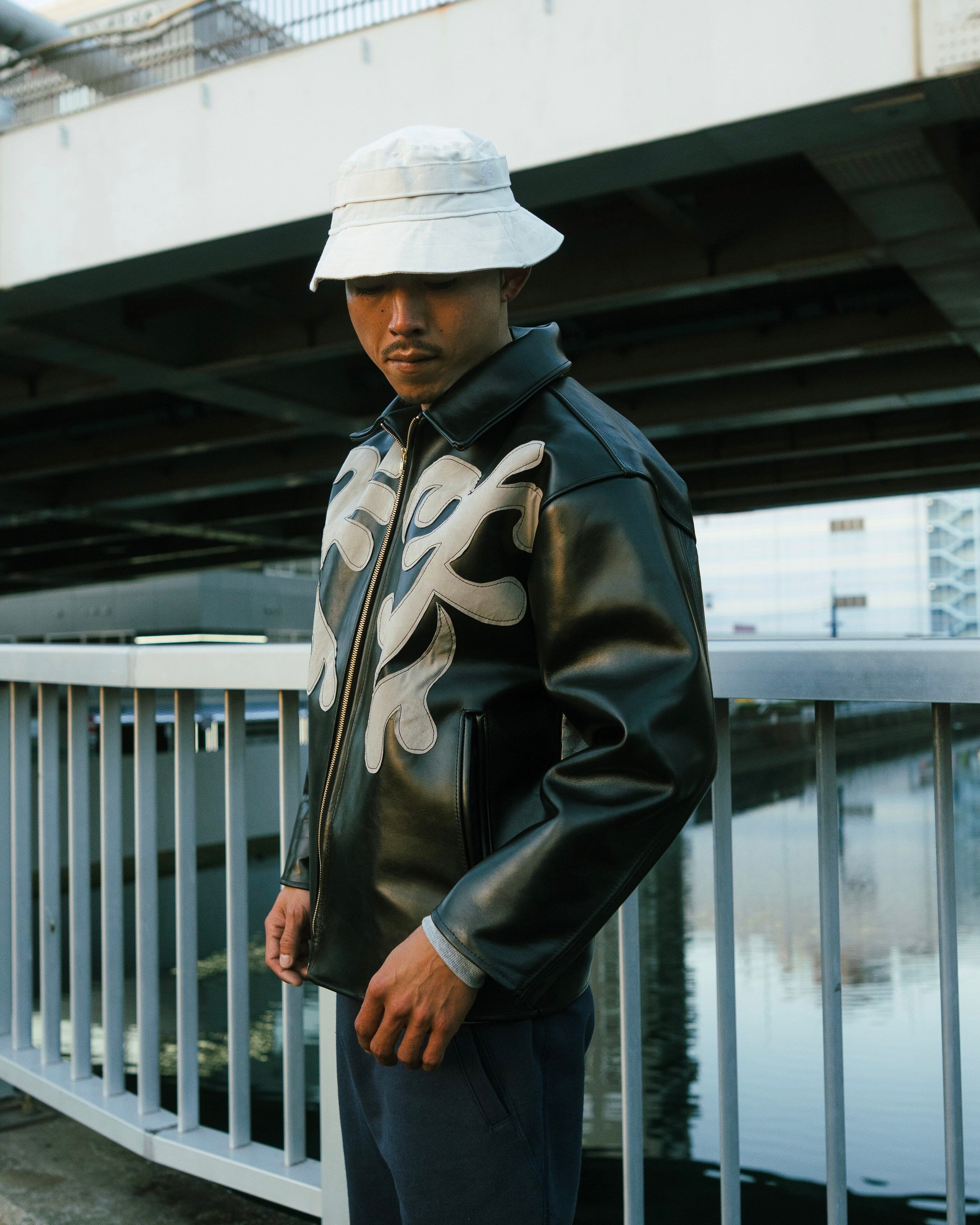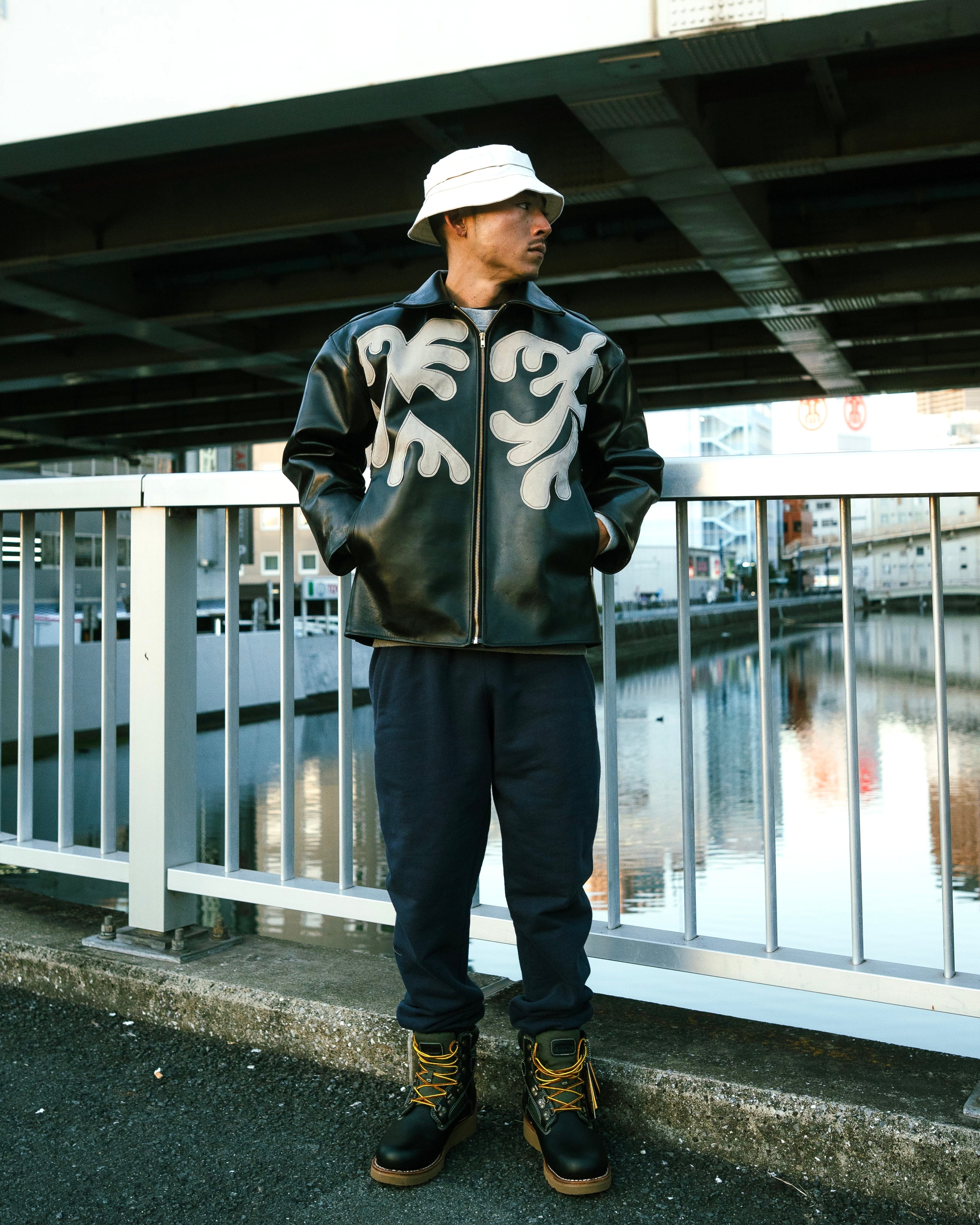 By Any Scenes / NY Pattern Patch Leather Jacket (BLACK)