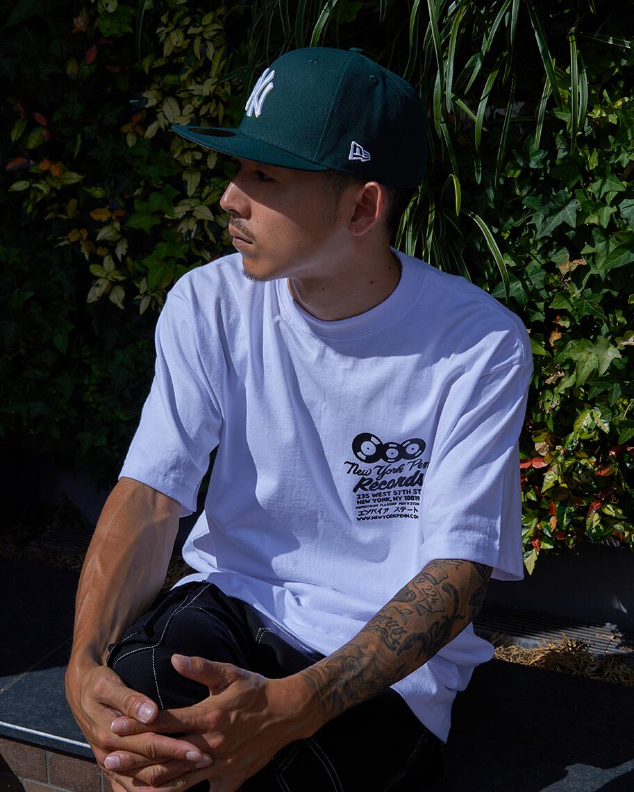 フロントにブランドロゴ、バックにはNYと音楽 デザイナーによる生粋のニューヨーカーならではのデザインがプリントで落とし込まれた一着となってます。